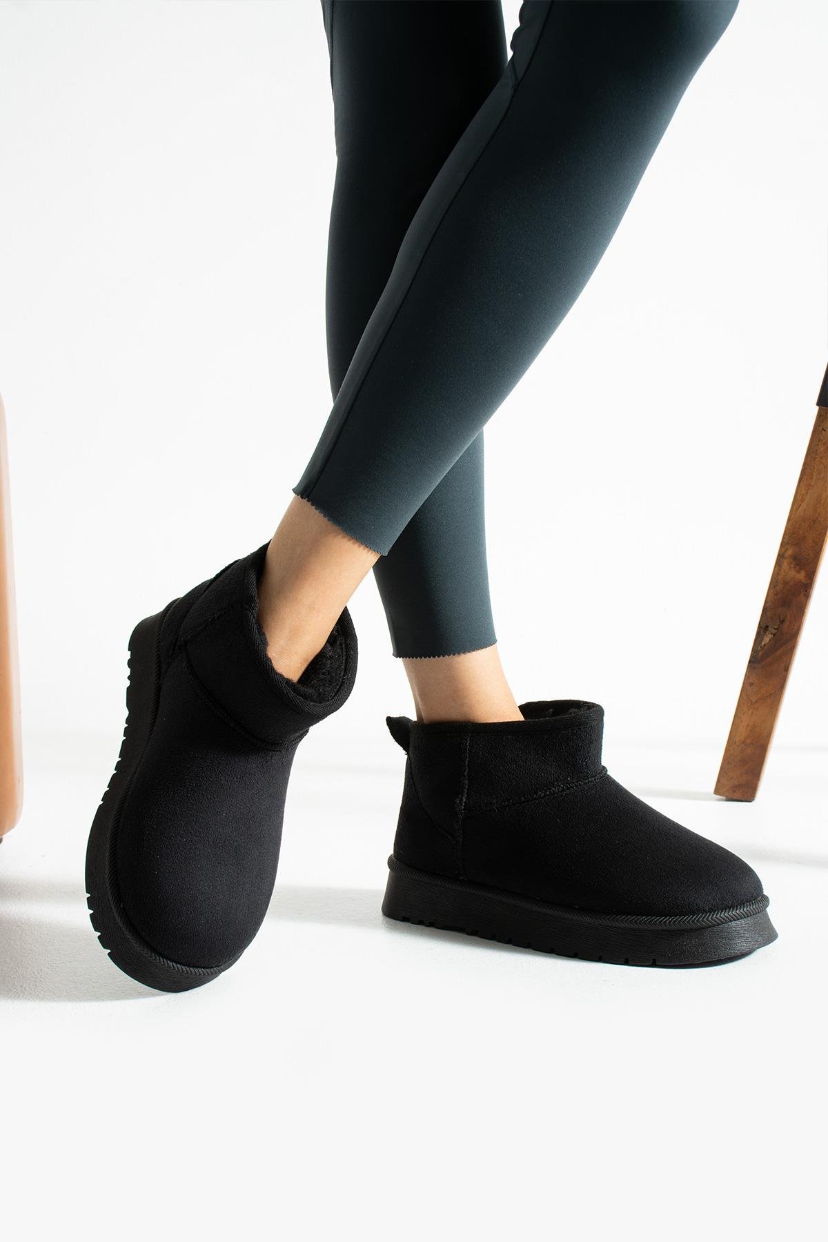 SHOETEK Lesva Kadın Bot İçi Kürklü Siyah Süet (Lesva)