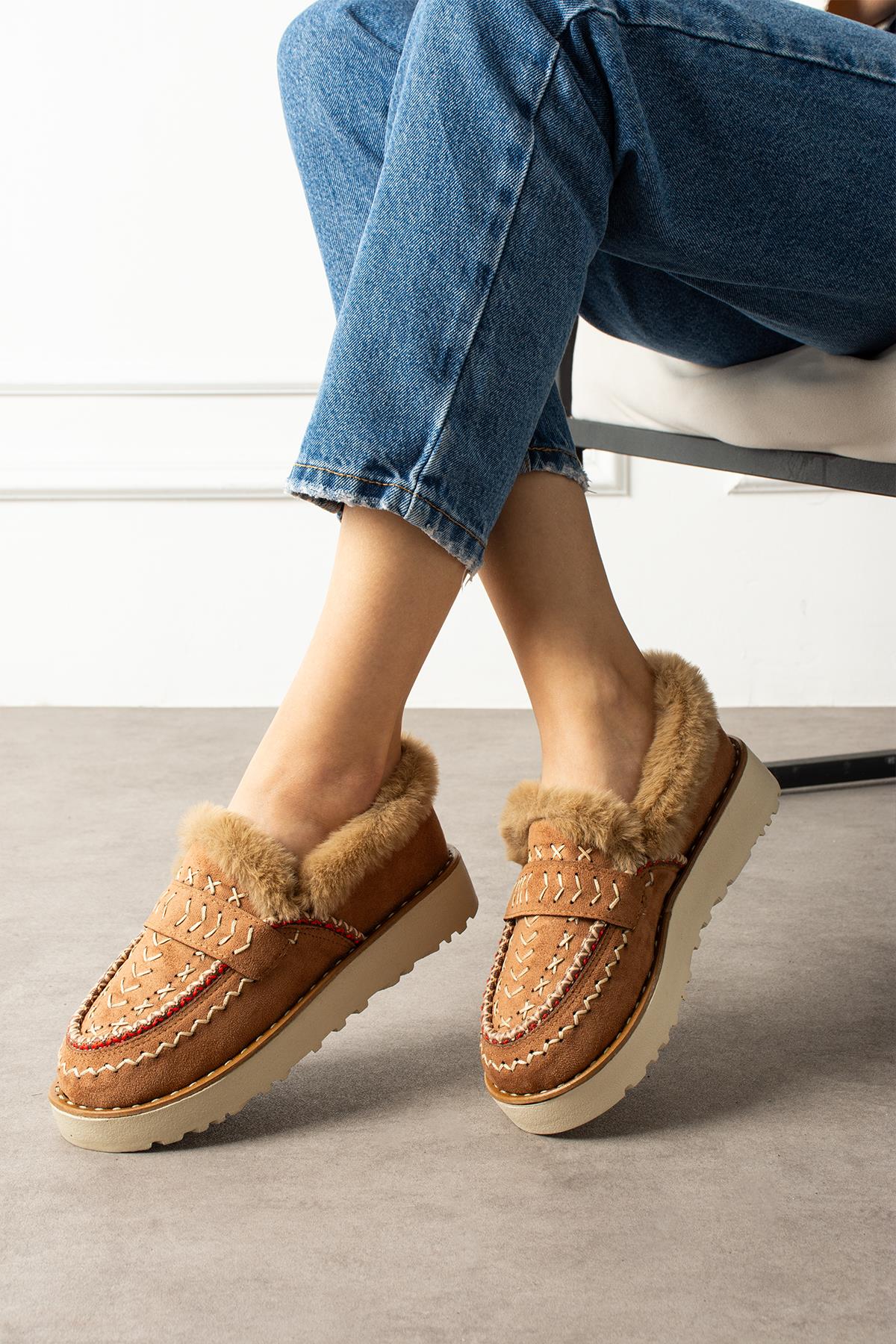 SHOETEK Liyi Kadın Kısa İçi Kürklü Hafif Tabanlı Taba Süet (Liyi)