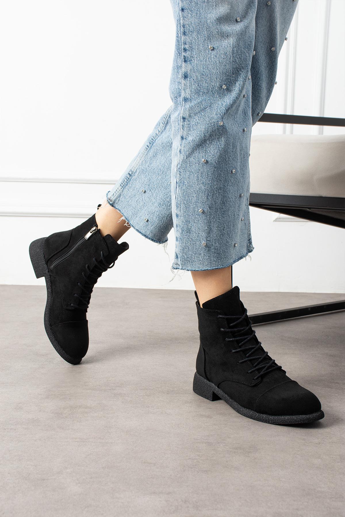 Shoetek Marcello Kadın Bot&Bootie Kauçuk Tabanlı Bağcıklı Siyah Süet (Marcello)