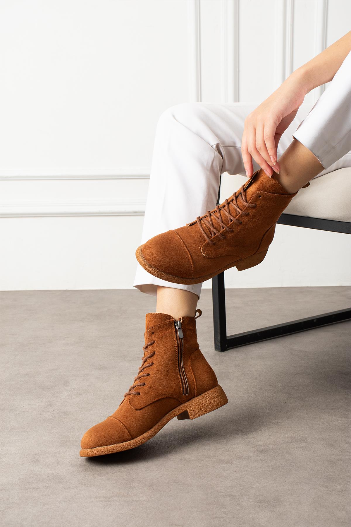 Shoetek Marcello Kadın Bot&Bootie Kauçuk Tabanlı Bağcıklı Taba Süet (Marcello)